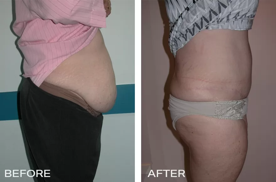 The patient was a 58-year-old female who had managed to reduce her weight by 40kg through a diet and exercise program. She was happy with the health improvements but was concerned by the contour of her lower abdomen – Case Study of Tummy Tuck – abdominoplasty.